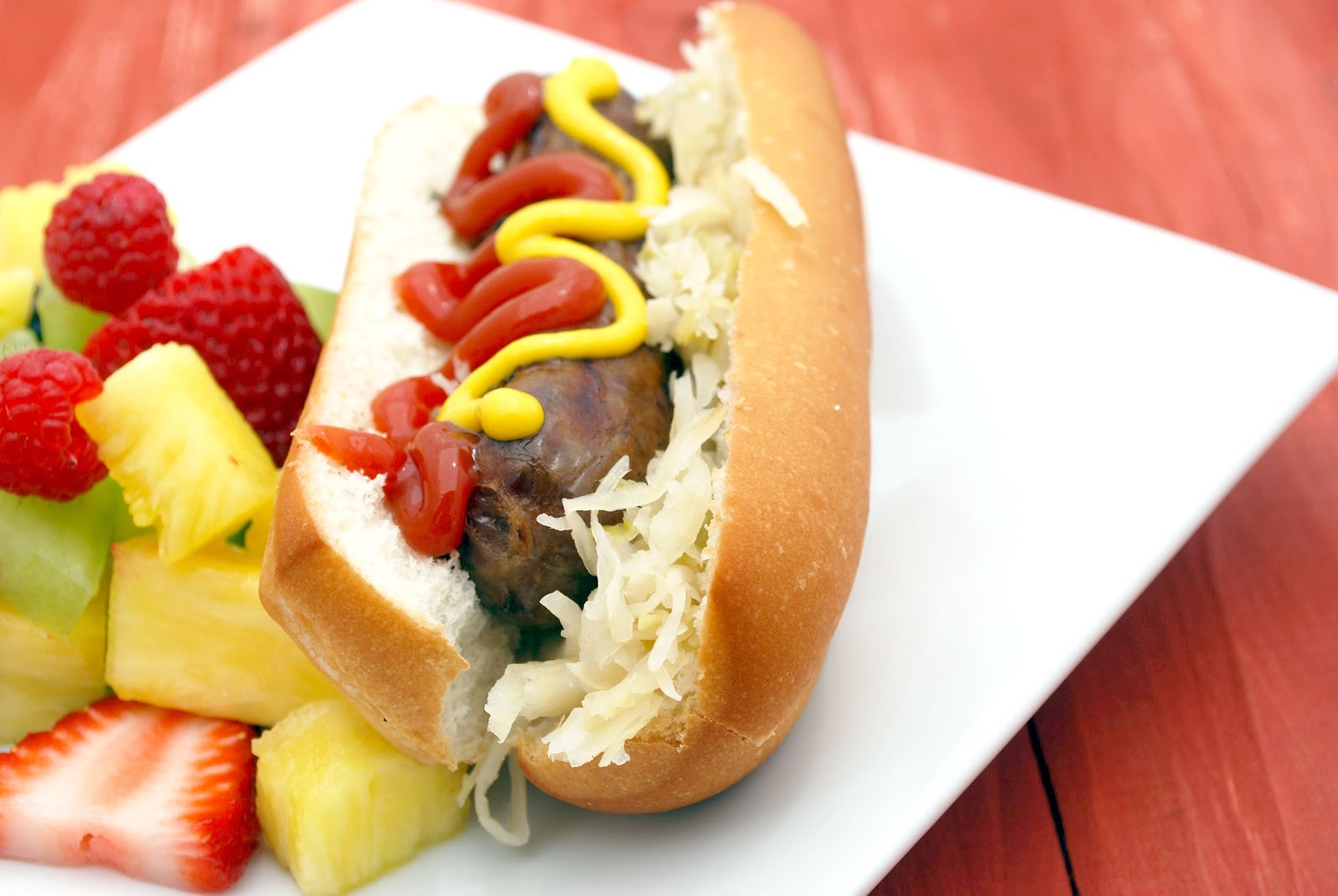 Serve brats on buns with lots of sauerkraut, ketchup and mustard.