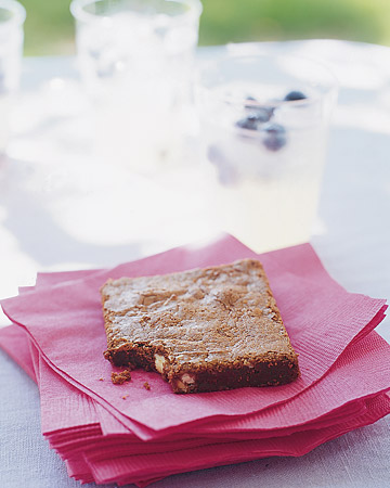- Spread batter evenly into prepared pan. Bake until brownie has just set but still feels soft, about 20 minutes. Let cool on a wire rack. Cut into squares.