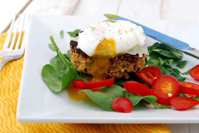 Quinoa Cakes with Poached Eggs and Spinach (makes 6 cakes)