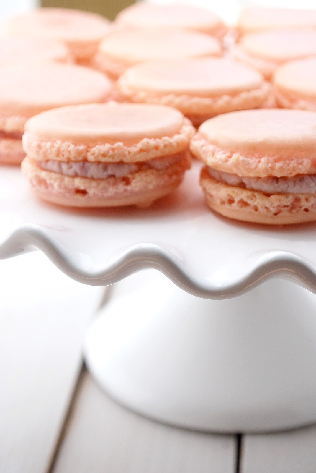 Place macaron batter into a piping bag fit with a large, round tip and pipe small circles (about 1 inch to 1 ½ inches in diameter) onto your prepared baking sheets. Let macarons rest for at least 45 minutes to an hour, or until a hard shell has developed on the top. You can test this by carefully brushing your finger over a macaron. If it feels dry, you’re ready to go. If not, give it another 15 minutes. Meanwhile, preheat your oven to 300F.\n\nBake for 9-11 minutes, one baking sheet at a time. Let cool completely before filling.